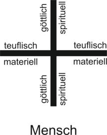 Der waagrechte Teil bezeichnet das materielle, tierische, sexuelle und teuflische.