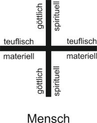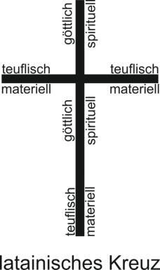 Der waagrechte Teil bezeichnet das materielle, tierische, sexuelle und teuflische.